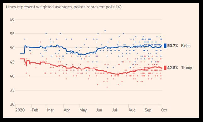 As it stands today, the national polls by the Financial Times shows that Joe Biden is currently in the lead to become the next US President. The market opines that a win by Biden is harmful to the stock market! This is all because he is planning to reverse most of President Trump's multitrillion-dollar corporate tax cut, which was one of the factors that drove the US stock market rally in recent years.