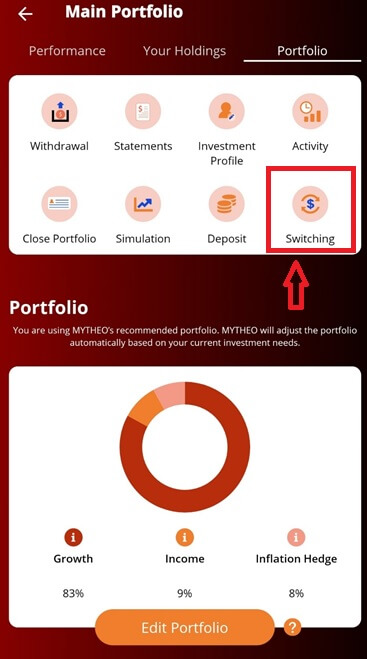 2. Investors can also opt to switch into the Omakase Income Portfolio via our Switching function within the app.