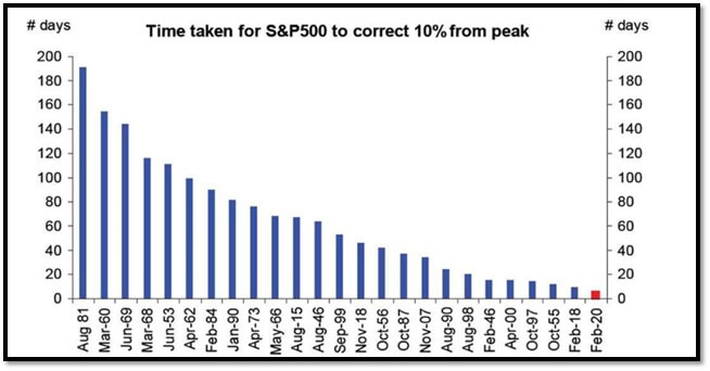 Chart 3: Time Taken for S&P 500 to correct 10% from the peak
