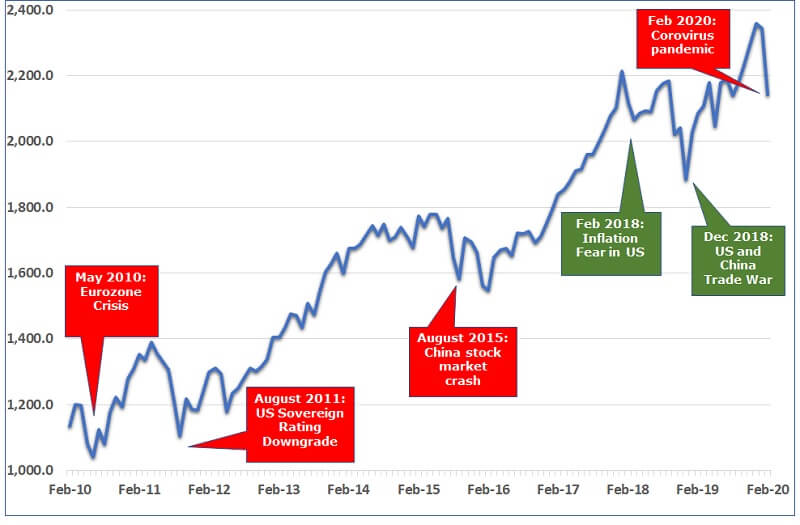 Chart 5: Major Black Swan Events and MSCI World Index 2010 to 2020