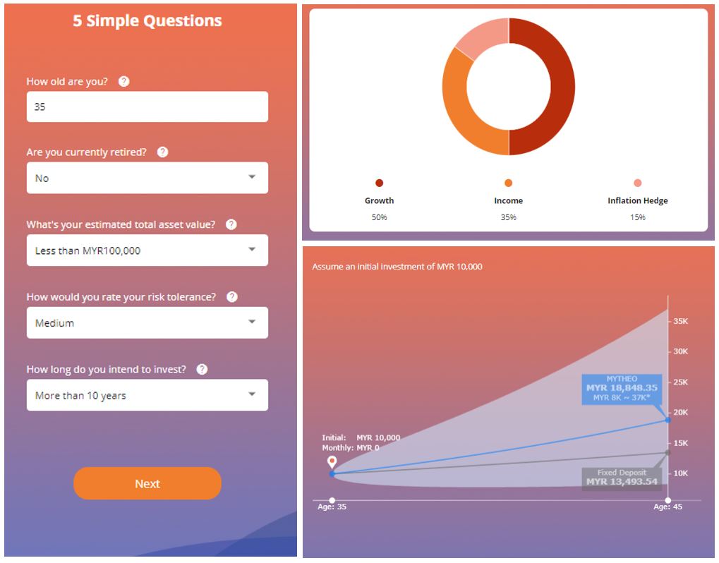These three are combined in a well-balanced manner according to the individual needs of each investor. This allocation strategy is a customer centric lifestyle approach basing on individual profiles, risk tolerance and investment horizon regardless of your goals. Goals may change in the future but a sound and disciplined lifestyle of investing may not. MYTHEO instills this investment discipline by automatically monitoring, rebalancing and optimizing your portfolios.