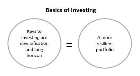 Two key investment concepts are “diversification” and investing for “long-term”.