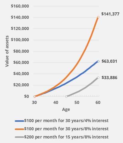 If you are investing while controlling risk, you might only get an interest rate (return) of a few percent a year. However, by investing even a small amount regularly over 10 or 20 years, there is a clear difference compared to just depositing at a bank.